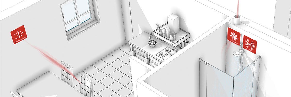 Naudojimo pavyzdys:RD serijos stoginiai ventiliatoriai gali būti naudojami, pavyzdžiui, daugiabučiuose namuose su keliais būstais ir vidinėmis vonios kambarių patalpomis. „Helios“ ištraukiamo oro elementas AE Hygro užfiksuoja kylančią drėgmę ir per atsidarantį vožtuvą reguliuoja oro kiekį. Naudojant „Helios“ diferencinio slėgio reguliatorių EDR, RD stoginis ventiliatorius atitinkamai padidina apsukas ir oro srautą. Drėgnas oras pašalinamas į išorę. Tuo tarpu „Helios“ oro tiekimo elementas ZLA tyliai tiekia reikiamą filtruotą šviežią orą iš lauko. |